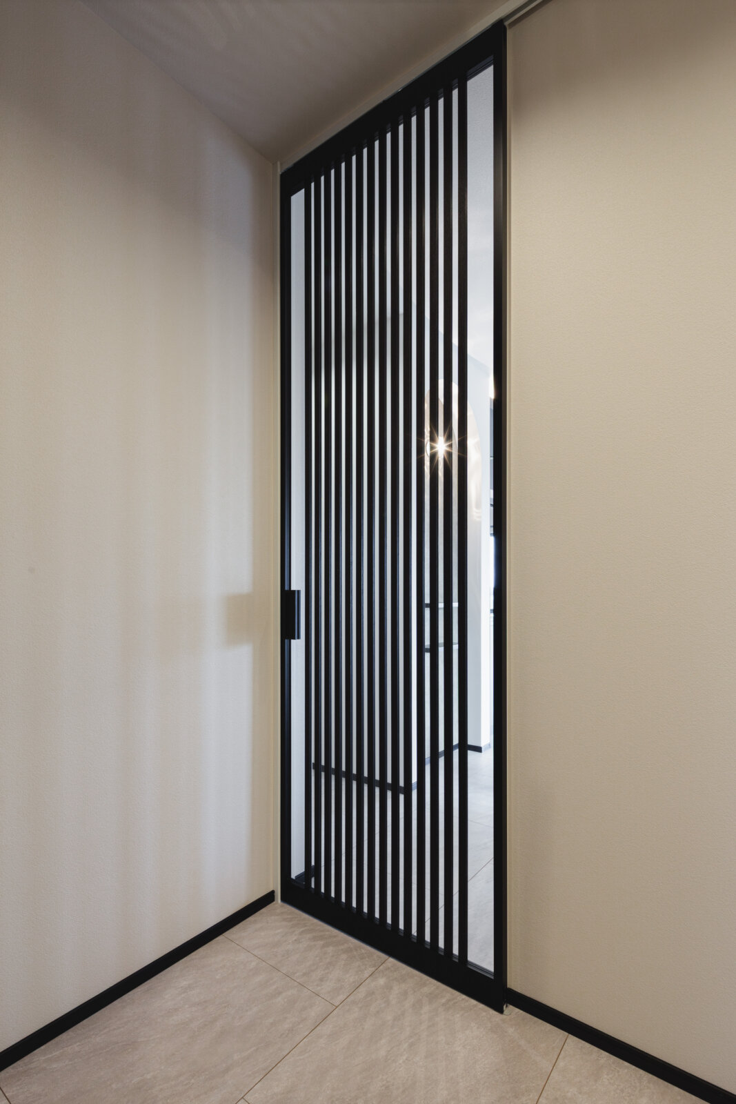リビングドアはシャープな縦ラインを施したグランドハイドア