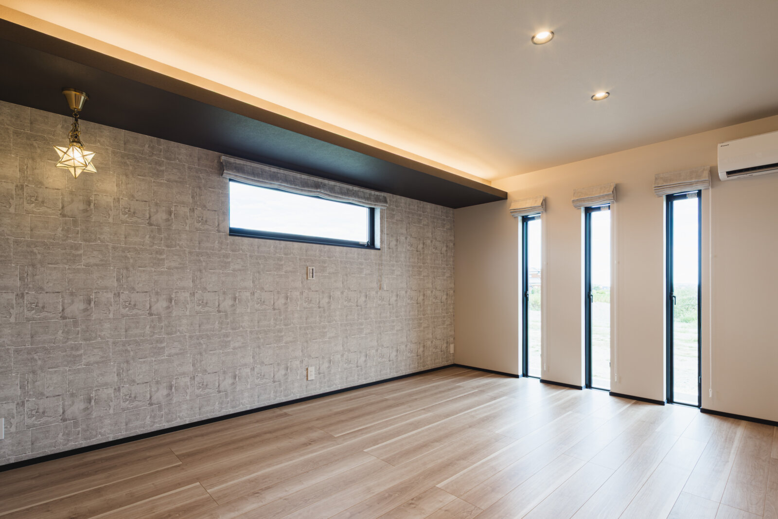下がり天井にライン照明を入れ3本のライン窓を施すことで睡眠の質を高める工夫も