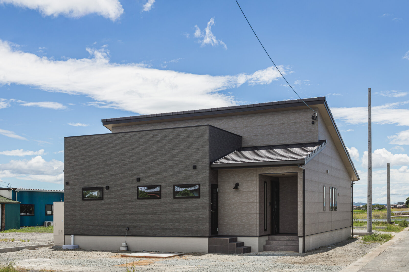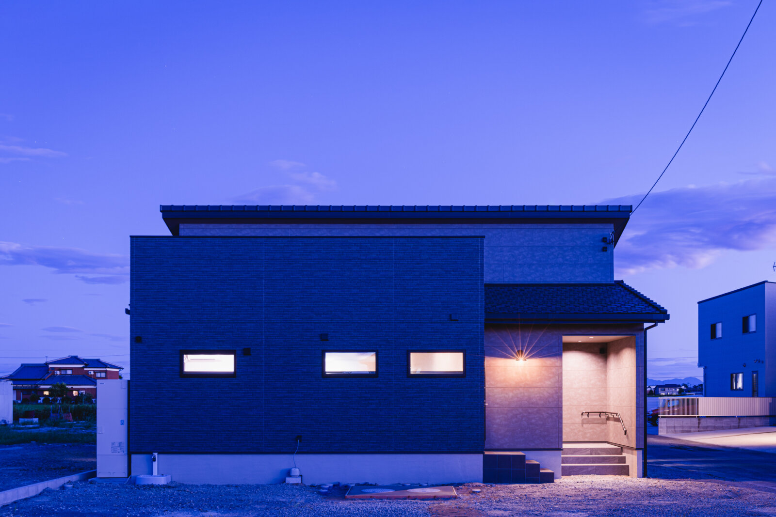 シャープな水平ラインと大きな主棟が邸宅感を醸し出します