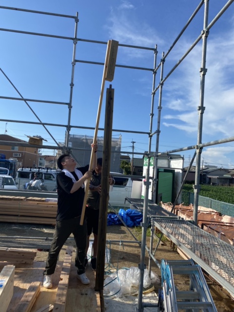 お施主様により記念に「1本柱建て」を行っていただきました🤗