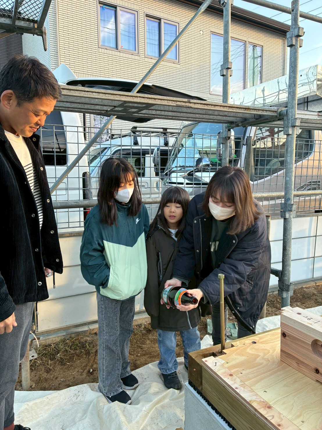ご家族皆さんで、建物の四隅に塩・酒をまいて清めていただきました👍
