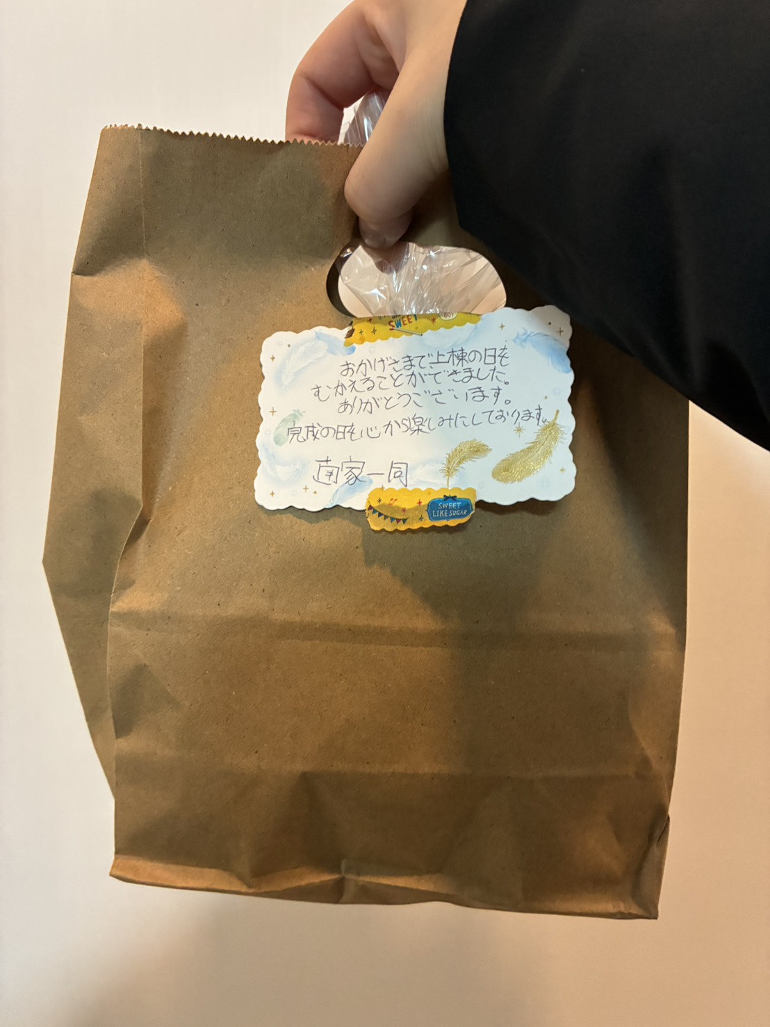 可愛いお子様から直筆メッセージ付きの手土産を頂き、寒さも疲れも飛び癒されました🥰ありがとうございます!