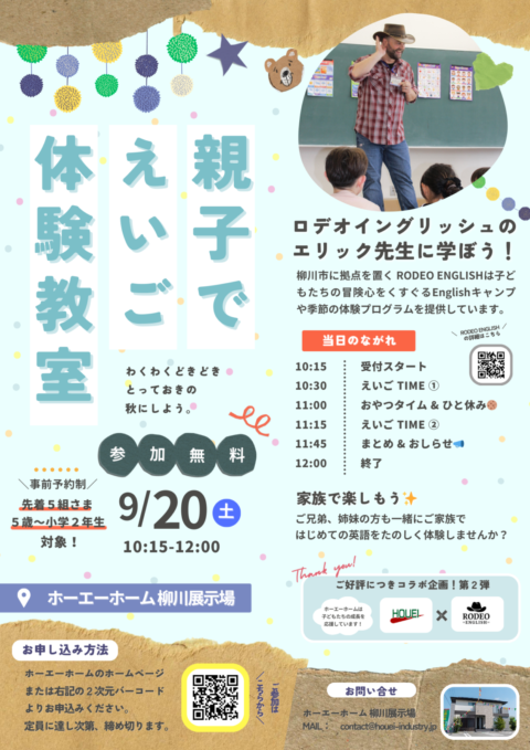 2025.08.24 第2弾🍁親子でえいご体験教室のお知らせ🐎 親子でえいご体験教室を開催します。 今回のイベントは、小学校での外国語活動がスタートする前の小学2年生までのお子さま、 5歳から8歳 を想定した、親子…