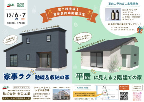 2025.11.22 祝2棟!完成見学会を開催します✨ 開催日: 2025,12,6~2025,12,7まで お施主様のこだわりの詰まった完全自由設計のお住まいをぜひご覧ください。 事前予約をいただいた方には、ReFaの… NEW