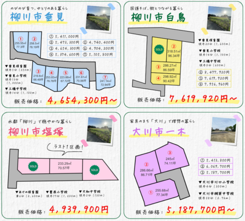 こちらのページでは、下記の4つの分譲地の情報を掲載しています。