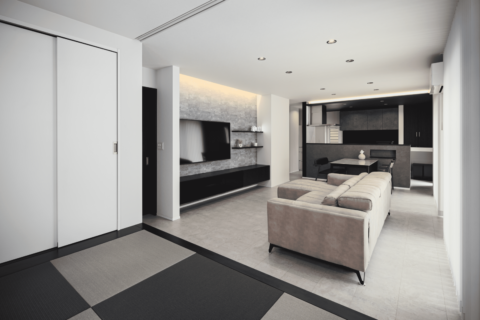 ベージュ系の外観 造作x洗面化粧台 2階書斎本棚 2階書斎マルチカウンター LDK キッチンパントリー扉閉 キッチンパントリー扉開 和室×洋室 2階洋室 2階洋室WIC